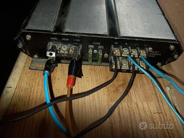 Amplificatore per auto con 4 canali da 150w ciascuno. Per un totale di 600w. Dotato di crossover in ingresso selezionabile LPF-HPF-FLAT (basso alto e full range). normali segni di usura. l'amplificatore è stato testato ed è funzionante. vendo per non utilizzo. solo consegna a mano dopo prova
