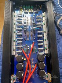 vendo o scambio amplificatore due canali un vero mostriciattolo unica pecca che lamico mio dove si mette il cavo negativo GND e un pochino sciolto ma se guardate la foto non e nulla di grave a lasciato il cavo un po lento e a messo un cavo piccolo ma per altre informazioni contattatemi lo potete anche provare senza problemi