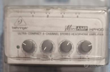 Vendo Behringer HA400, amplificatore per cuffie stereo ultra compatto a 4 canali, perfetto per studi di registrazione, podcast, home recording o per ascolti condivisi di alta qualità.