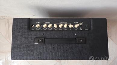 Vendo amplificatore Blackstar Debut 50R. Semplice amplificatore a transistor da 50 watt, non male per chi vorrebbe passare da un semplice amplificatore da stanza a qualcosa di più potente. Ha due canali, uno clean/clean bright, e uno overdrive, un semplice EQ, la funzione ISF di Blackstar, e anche un semplice riverberino. Può passare dalla modalità 50 watt a 5 watt, per suonare a volumi più bassi in camera. È dotato di un FX Loop per cui è anche possibile aggiungere effetti dopo la pre-amplificazione o bypassarla completamente per utilizzare solo power-amp e speaker. Ci ho potuto suonare varie volte con band in semplici contesti (scuola e piccoli concertini) e riesce a fare il suo dovere per il prezzo; a volumi alti bisogna stare un po' più attenti all'EQ e allo speaker che va un po' più in distorsione.