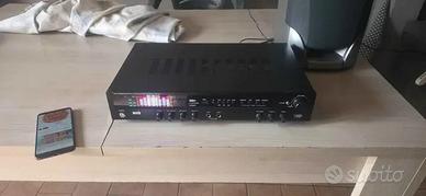 Vendo Amplificatore a 5 Canali Bluetooth, USB, SD, AUDIO IN Con uscita DVD TUNER AUX ECC.. Perfettamente funzionante e Potente, con le seguenti caratteristiche: * Amplificatore surround 5 con ricevitore BLUETOOTH * 600W max. potenza totale - corrispondenti a 2 x 150W + 3 x 100W MAX (180W RMS SUI 5 CANALI) * 4 x ingressi RCA * Display digitale super luminoso RITIRO A LATINA POSSIBILE SPEDIZIONE CON 15 EURO IN PIÙ E PAGAMENTO BONIFICO ISTANTANEO