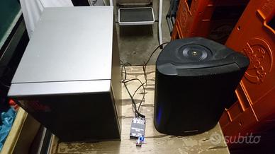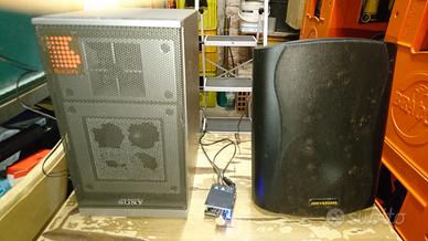 2 vecchie casse ancora ben funzionanti da 50W ciascuna, collegate ad un piccolo amplificatore Bluetooth, ideale per ascoltare musica direttamente dallo smartphone.