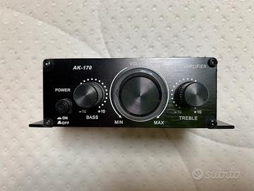 Amplificatore AK 170 20+20 watt con connessioni Bluetooth e rca.Completo di casse acustiche cavetti e alimimentatore.Dimensioni amplificatore L/P/H 12x10x5
