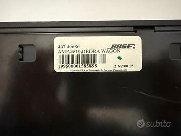 Vendo un amplificatore booster di alta qualità costruito dalla Bose per la Lancia Lybra. È stato modificato per poter essere utilizzato universalmente su qualsiasi autovettura che abbia attacco ISO, adatto per gli autoradio un po’ datati che non hanno le uscite RCA. La potenza di 100w distribuiti su 4 canali più subwoofer già con le frequenze tagliate, non farà tremare i vetri della vostra auto ma la qualità del suono sarà eccellente con un aumento dei bassi che spesso manca nelle auto con altoparlanti di serie. È stato testato e controllato ed è perfettamente funzionante. Attenzione è un booster e non un amplificatore con gli RCA. Questa è una vendita tra privati, con esclusione di garanzia e con la formula “visto e piaciuto”. L’oggetto è venduto “così com’è” e non è prevista nessuna restituzione.