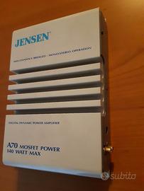 Vendo amplificatore per auto Jensen a mosfet, potenza 70+70 W. Ponticellabile mono. Qualità mosfet, non comune nei car audio. Con scatola originale e istruzioni, come da foto.