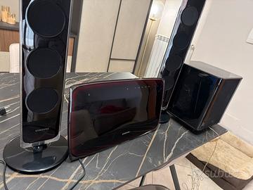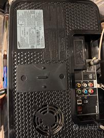 Samsung HT-X720. Non è solo una cassa: è un vero sistema Home Cinema 5.1 compatto (lettore DVD + amplificatore + casse esterne). Ecco le caratteristiche principali : 🔊 Funzioni audio/video •Sistema 5.1 surround (con subwoofer e satelliti)  •Supporto audio Dolby Digital e DTS  •Potenza: circa 133 W x 2 (frontali)  •Modalità audio avanzate (Virtual Sound, Smart Volume) 💿 Lettore integrato •Legge: •DVD •CD audio •file MP3 / WMA / DivX  •Supporta dischi registrabili (CD-R/RW, DVD±R/RW) 🔌 Connessioni •HDMI (audio + video in alta qualità)  •USB (per chiavette e lettori MP3)  •Ingressi AUX / RCA •Collegamento a TV e dispositivi esterni •Compatibilità Bluetooth (su alcune versioni)  📺 Funzioni extra •Sincronizzazione audio/video (AV Sync)  •Controllo tramite TV Samsung (Anynet+ HDMI-CEC)  •Radio FM integrata •Modalità risparmio energetico automatica  ⚙️ Dati tecnici •Consumo: circa 95 W  •Dimensioni: ~45 × 25 × 10 cm  •Peso: circa 4,2 kg