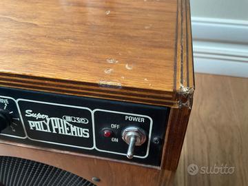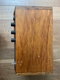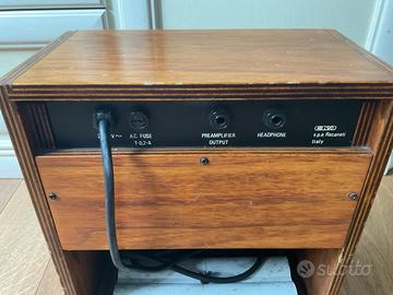 PERFETTAMENTE FUNZIONANTE 8 watt RMS, cassa in legno, controlli: volume, tono, overdrive. alimentazione: 220V o a batteria 6x1,5 Volt. cono 8 pollici (20 cm). dimensioni: 310x275x175. prese esterne: pre-amp, cuffia. INTERRUTTORE SOSTITUITO