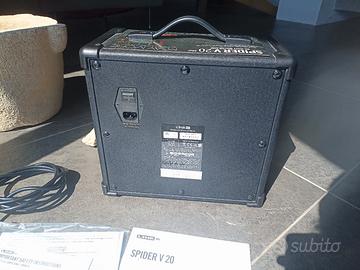Amplificatore per chitarra LINE 6 Spider V20 con scheda audio per effetti integrata. Si possono modificare gli effetti tramite l'apposito selettore o da computer o telefono tramite micro USB dove è possibile costruire tutta la catena del suono, registrare(io non ho mai fatto di questa funzione), ascoltare musica utile anche come accompagnamento.