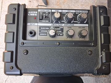 Il Micro CUBE Guitar Amplifier è il modello più compatto nella linea degli amplificatori Cube. Questo innovativo piccolo ampli portatile offre caratteristiche di tutto rispetto come modelli COSM di amplificatori e 6 effetti DSP di alta qualità, con speaker da 5" e 2W di output power. Inoltre può essere alimentato a batterie o con alimentatore per una portatitlità davvero completa.