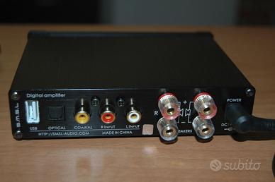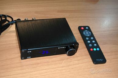 Nuovo, mai usato, in scatola originale, con telecomando, alimentatore e accessori. Regalo un cavo USB per collegarlo al laptop/desktop. E' plug&play viene riconosciuto subito senza necessità di driver su W10/11 e si può usare per amplificare l'audio del computer. Ha ingresso ottico digitale e coassiale, più ingresso RCA. E' un prodotto di qualità di nota marca, riassumo le caratteristiche: 50+50W RMS 4 Ohm 35W 8 Ohm Banda pass. 20 Hz - 22kHz S/N 102 dB Ingressi digitali 44.1 - 192 kHz dim. mm 137x103x33