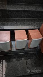 Sistema home theatre composto da amplificatore con sitonizzatore marca Onkyo modello rx-sr5702e perfettamente funzionante + 1 cassa orizzontale + 1 cassa grande + 4 casse piccole marca Infinity rivestimento effetto legno, come nuove e 100% funzionanti