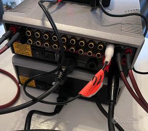 Impianto composto dall’amplificatore Cyrus 8 vs2 l’ultimo Made in England, completo del suo regolatore di tensione e telecomando, di cui sono presenti gli imballi originali, abbinato ai diffusori Canton GLX100(cavi compresi) e al ricevitore DAC Bluetooth 1mii ds700.