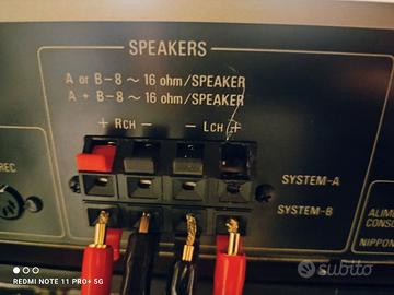 unico problema che non influisce sul corretto funzionamento un connettore rosso speakers A e' danneggiato ma e possibile attaccare le casse sulla linea speakers B visto che ha la possibilità di attaccare 2 coppie di casse