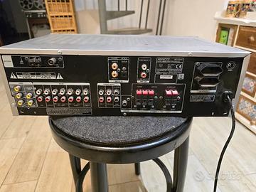 Amplificatore dolby surround Kenwood KRF-V5090DF.. Potenza totale di 500W RMS ad 8 ohm. Casse frontali A e B. Totale 5 canali. Ingressi ed uscite RCA svideo, coassiale ed optical digital fiber (spfid). Funziona correttamente, ha solo difetti estetici che potete vedere in foto. Alta qualità del suono ed alta potenza. Home cinema, home theatre, thx, dolby pro logic 2, dolby digital