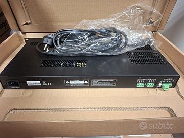Amplificatore 2 x 150W RMS su 70/100V. Classe D. Funzione auto stand-by, raffreddamento senza ventole, protezione termica e di sovraccarico. Circuito anti clipping. Dimensioni: 482,6 x 44 x 221 mm. Peso: 6,1 Kg. usato solo per prova, compreso di scatola originale e accessori