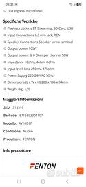 Vendo amplificatore FENTON AV 100_BT come nuovo acquistato 6 mesi fa. Lo vendo per passaggio a modello superiore,è perfetto in tutto e di ottima qualità, le specifiche le trovate nelle foto.