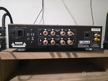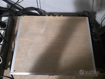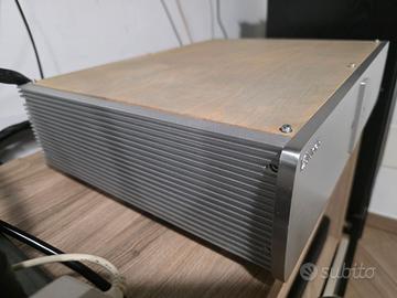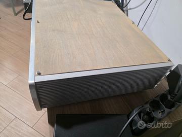 NO a scambi e/o permute, grazie. Finale di potenza tedesco hi-end color argento in classe AB con 158 watt a 8 ohm e 205 a 4 ohm, l’A-100 pilota senza problemi qualsiasi diffusore. Ottime condizioni estetiche e funzionali. Manca solo la piccola manopola sulla parte posteriore per bilanciare left-right, ma comunque il finale viene venduto perfettamente bilanciato e la manopola si può reperire facilmente. Ha un pannello in alluminio e i lati del telaio mostrano i dissipatori di calore, con i piedini regolabili in altezza. La parte superiore è stata sostituita con un coperchio in legno per una soppressione più efficace delle interferenze elettromagnetiche (EMI), elettrostatiche (ESD) e di radiofrequenza (RFI). Costruzione solida, componentistica di primo livello, questo finale offre un suono potente, dinamico, naturale e raffinato su tutte le frequenze, al pari di Technics, Marantz, Yamaha. Scheda tecnica: Potenza (RMS @ 4 | 8 ohm): 2 x 205 watt | 2 x 158 watt Distorsione: <0,01% (@ 1 watt) Rapporto segnale-rumore: 83dB Risposta in frequenza: 10Hz – 35KHz Alimentazione con interruttore di alimentazione: AC 230 V – 50 Hz Consumo energetico Standby: 0,4 W Dimensioni: 44 x 11,8 x 33 cm Peso: 14,2 kg Preferibile ritiro a mano su Roma.