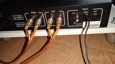 Usato recentissimo. Revisionato dall'azienda. 2 anni di garanzia ufficiale. Nel suo imballaggio di origine. L'EAM Lab Studio 162 è un amplificatore di potenza stereo ad alta corrente di fabbricazione italiana che eroga 90 W RMS per canale a 8 Ω, progettato per garantire elevata dinamica e controllo. Caratterizzato da un design compatto, utilizza un circuito cascode, un trasformatore da 500 VA e transistor bipolari MJL 3281/1302, offrendo un suono dettagliato e avvolgente, spesso lodato per il suo ottimo rapporto qualità-prezzo. Caratteristiche principali e prestazioni - Potenza e controllo: in grado di pilotare carichi impegnativi, offre 90 W RMS a 8 Ohm e fino a 250 W a 2 Ohm. - Profilo sonoro: progettato per un palcoscenico sonoro profondo ed espansivo con imaging accurato e bassi definiti, secondo Norsk Audio Teknikk. - Componenti di qualità: è dotato di un trasformatore da 500 VA, configurazione di tipo Darlington e 2 coppie di transistor MJL 3281 / MJL 1302. Specifiche Tecniche Principali - Potenza d'uscita (RMS per canale): 90 W su 8 Ohm / 160 W su 4 Ohm / 250 W su 2 Ohm. - Risposta in frequenza: 20 Hz – 28 kHz (±0,05 dB) o 5 Hz – 100 kHz (±3 dB). - Rapporto segnale/rumore (SNR): > 108 dB. - Distorsione Armonica Totale (THD): 0,003% a piena potenza su 8 Ohm. - Slew Rate: 30 V/µs. - Fattore di Smorzamento (Damping Factor): 250 su 8 Ohm a 50 Hz. - Sensibilità d'ingresso: 1,4 Vrms per la massima potenza. - Impedenza d'ingresso: 47 kΩ via XLR, 22 kΩ via RCA Caratteristiche Costruttive - Alimentazione: Trasformatori EamDualcorETM da 500 VA con una sezione di filtraggio di oltre 26.000 µF. - Transistor: Utilizza 2 coppie per canale di BJT MJL3281/MJL1302. - Dimensioni: 37 x 42 x 10 cm (P x L x H). - Peso: 15 kg. - Ingressi: Disponibili sia connettori bilanciati XLR che sbilanciati RCA