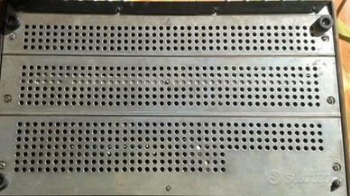 Vendo GRUNDIG SV200 AMPLIFICATORE DI CLASSE,a transistor del 1969, oltre 16Kg di peso. Scheda Tecnica: Grundig SV 200 Produttore: Grundig (Made in W. Germany) Anno di produzione: 1968 – 1969 (circa) Tipologia: Amplificatore integrato stereo a stato solido (transistor) Potenza di uscita: ~70 + 70 Watt (Potenza Musicale). All'epoca disporre di questa potenza in ambito domestico era considerato un lusso assoluto. (Potenza RMS stimata solitamente tra i 30W e i 50W per canale su 4 Ohm). Cabinet: Pannello frontale in alluminio spazzolato e inserti in plexiglass nero, racchiuso in un elegante mobile in vero legno (tipicamente noce o teak). Sezione Controlli ed Equalizzazione (Pannello Frontale) Questo modello si distingue per una ricchissima sezione di controllo del suono: VU Meter: Doppi indicatori analogici illuminati (Left e Right) per monitorare il livello di uscita, con scala logaritmica espressa in decibel (da -40 dB a 0 dB). Equalizzatore Grafico a 5 Bande: Regolazione fine delle frequenze tramite 5 slider verticali indipendenti: 40 Hz, 200 Hz, 3000 Hz, 7500 Hz, 16000 Hz. Controlli di Livello: Due ampi slider orizzontali dedicati rispettivamente al Volume (Lautstärke) e al Bilanciamento (Balance). Ingressi e Funzionalità Nella parte inferiore troviamo la pulsantiera di selezione e i filtri: Selettore Sorgenti: TA I (Phono I): Ingresso per giradischi. TA II (Phono II): Secondo ingresso per giradischi. Universal: Equivalente a un ingresso AUX odierno (per lettori CD, DAC, ecc.). Tuner: Per il sintonizzatore radio. TB (Tape): Ingresso/Uscita per registratore a bobine o piastra a cassette. Filtri e Modalità Audio: Linear: Esclude l'equalizzazione (suono "Flat"). Contour I & Contour II: Circuiti Loudness con due diverse curve di intervento per esaltare i bassi e gli alti durante l'ascolto a basso volume. Monitor: Funzione Tape Monitor per ascoltare la registrazione in tempo reale. Filter: Filtro anti-fruscio/rumore (probabilmente un passa-basso per ta
