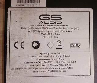 Vendo Amplificatore GS Audio 6400.1 1ohm bruciato (Finali da sostituire) prezzo trattabile