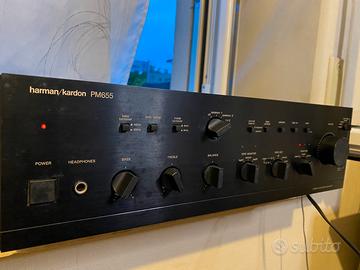 Amplificatore integrato Harman Kardon PM655, vintage storico modello Hi-Fi degli anni ’80, noto per la sua qualità sonora calda e potente. funzionante e ideale per impianti stereo, giradischi e appassionati di audio vintage. ⚙️ Caratteristiche tecniche •Tipologia: Amplificatore integrato stereo •Potenza: circa 2 x 60W su 8 ohm •Tecnologia: High Current Capability (HCC) – grande capacità di pilotaggio anche su casse difficili •Risposta in frequenza: circa 10 Hz – 100 kHz •Distorsione armonica: molto bassa (~0.03%) •Ingressi: •Phono (MM/MC selezionabile) •Tuner •CD / Vide Per visual no Pioneer Technics Yamaha Marantz