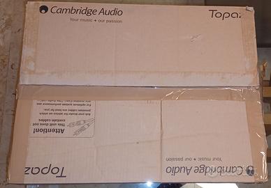 Per passaggio ad amplificatore di fascia superiore, vendo Amplificatore Hi Fi Cambridge Audio Topaz AM10 nero. Sul pannello frontale è presente un ingresso per il collegamento a un iPod, smartphone o altro lettore mp3, un’uscita per il collegamento delle cuffie, i tasti di selezione del canale d’ingresso, il tasto del menù per la regolazione dei toni e del bilanciamento, il pomello per il volume. 5 ingressi posteriori permettono di collegare un lettore CD, un sintonizzatore o TV, un lettore DVD o Blu ray, un giradischi ed un ulteriore ingresso per lettore MP3 o PC. Sempre sul pannello posteriore sono presenti le uscite per le casse ed un’uscita per un registratore. L’amplificatore Topaz AM 10, soluzione perfetta per chi si affaccia al mondo dell’HiFi e/o vuole spendere poco, è stato utilizzato sempre in casa e mai sino a raggiungere il 100 % della potenza ed è completo di telecomando. Tutto perfettamente funzionante.