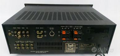 Amplificatore Hi-Fi Technics, usato in ottime condizioni perfettamente funzionante. Uno tra i migliori amplificatori vintage. Posso spedire, ma preferirei la consegna a mano. Eventuale costo di spedizione 11,00€ Potenza in uscita: 73 watt per canale su 8Ω (stereo) Risposta in frequenza: da 20Hz a 20kHz Distorsione armonica totale: 0,08% Fattore di smorzamento: 50 Sensibilità di ingresso: 2 mV (MM), 150 mV (linea) Rapporto segnale/rumore: 73 dB (MM), 92 dB (linea) Uscita: 150 mV (linea), 1 V (uscita pre) Impedenza di carico degli altoparlanti: da 4Ω a 16Ω Dimensioni: 450 x 173 x 352 mm Peso: 12,7 kg