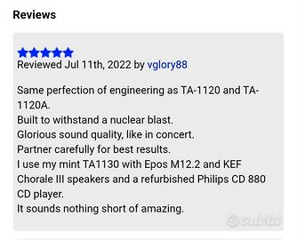 Cedo da mia collezione personale amplificatore HI FI TOP VINTAGE ( vero vintage di qualitá, in grado di far impallidire molti "mostri sacri" odierni...) MAGNIFICO e PERFETTO ( sia funzionalmente che esteticamente) SONY TA 1130.