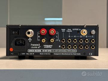 SPECIFICHE ingressi: 5x analogici / 1x S / PDIF digitali Uscite: 1x altoparlante stereo / 1x uscita TAPE. Risposta in frequenza: 5 Hz - 60 kHz Impedenza di ingresso: 10 kΩ Sensibilità di ingresso: 500 mV Potenza (8Ω): 50 W / canale SNR: 96 dB Schede opzionali: MM phono / DAC 1.3 / DAC 2.3 Opzioni di alimentazione: interno / ObelisK X2 Peso: 6 kg Dimensioni (LxAxP): 22 x 8,5 x 36 cm