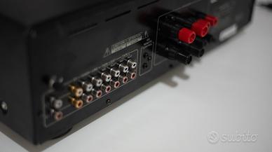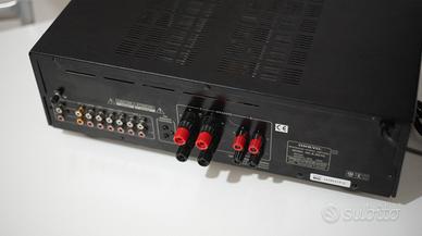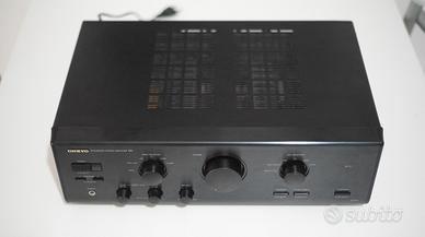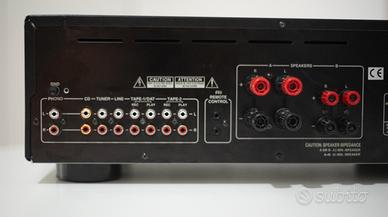 Onkyo A-9510 in ottimo stato estetico e funzionale, prodotto metà anni '90. Potenza 2×80W RMS su 8Ω | 2×100W su 4Ω — (130W dinamico) THD 0.06% — Smorzamento 150 — Risposta 15Hz-30kHz Ingressi: Phono MM/MC, CD, Tuner, Line, Tape 1, Tape 2. Uscita cuffia jack 6.3mm. Gestisce 2 coppie di diffusori: il morsetto A accetta cavi fino a 5mm di diametro per altoparlanti di grandi dimensioni e ostici da pilotare (carichi fino a 4 ohm). Tasto Source Direct per ascolto puro. Volume e selettore input motorizzati e gestiti da telecomando (non incluso ma reperibile in rete per qualche euro) Costruzione robusta tipica dell'epoca d'oro giapponese, 8.6kg! Posso spedire con super imballo. Prezzo trattabile