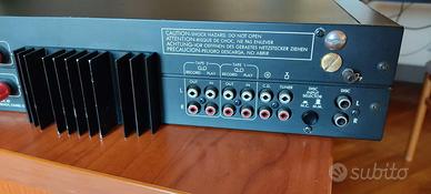 Potenza di uscita: 70 wattper canale in 8Ω (stereo) Risposta in frequenza: Da8Hz a 50kHz Distorsione armonica totale:0.02% Rapporto segnale/rumore: 77dB(linea) Dimensioni: 430 x 265 x 86 Peso:6,5 kg