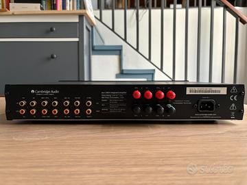 40 watts per channel (8 ohm), ottimo amplificatore entry level della Cambridge per iniziare ad avvicinarsi al mondo audiofilia.