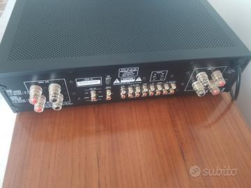 Amplificatore integrato 80+80 W RMS su 8 ohm, schede tecniche reperibili on line. C.a. 20 anni, condizioni eccellenti, vedi foto sia esterno che interno. Suona bene e ha alta capacità in corrente. Unici difetti veniali: segno su display poco visibile, led/spia acceso/spento con luce debole/intermittente, nulla che impatti in alcun modo il funzionamento. Prezzo ultimo occasione per vendita immediata, solo ritiro presso mia abitazione o zona Bologna. Non presente scatola, cavo alimentazione e telecomando incluso.