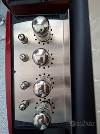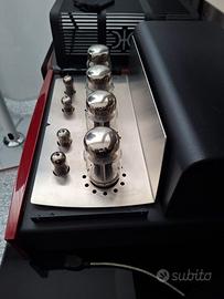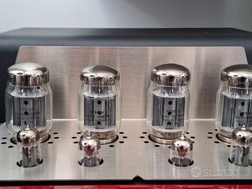 Costruito a mano in Italia con un'attenzione artigianale ai dettagli, il Roma 510AC è, fra i valvolari, uno degli amplificatori più musicali del mercato HI-END . Utilizzando valvole KT88 in configurazione push-pull, questo amplificatore integrato offre 80 watt per canale con dettaglio e potenza controllata.Bassi profondi e controllati: le KT88 offrono una gamma bassa solida, capace di scendere in profondità senza perdere definizione. Sul Roma 510AC, questo si traduce in bassi che riescono a dare corpo e presenza alla musica senza mai sopraffare le altre frequenze. Medi caldi e dettagliati: il tratto distintivo di queste valvole è la resa naturale della gamma media, la più importante per la riproduzione di voci e strumenti acustici. Gli ascoltatori descrivono spesso il suono come "organico" e "intimo", capace di rendere ogni nota autentica e coinvolgente. Il suono del Roma 510AC è meravigliosamente eufonico, rotondo, pieno, con la spazialità e la tridimensionalità che solo gli amplificatori valvolari sanno regalare e, quando hanno le caratteristiche del Roma 510, rendere indimenticabile. Alti dolci e mai affaticanti: le alte frequenze, pur dettagliate, mantengono un carattere musicale e non aggressivo, ideale per lunghe sessioni d'ascolto senza fatica e per completare quell’insieme sonoro dal fascino ammaliante. sono presenti cinque ingressi RCA e un'uscita pre-out.Per chi è il Synthesis Roma 510AC? Questo amplificatore di altissima qualità è ideale per: Audiofili puristi: chi cerca un suono valvolare autentico, senza fronzoli digitali, troverà nel Roma 510AC un compagno ideale. Amanti del vintage: il fascino delle valvole, combinato con un design classico, lo rende irresistibile per chi ama un'estetica senza tempo. Esploratori del suono: se desideri entrare nel mondo degli amplificatori valvolari con una “macchina” performante, che unisca prestazioni e affidabilità, il Roma 510AC è una scelta eccellente.in garanzia fino a Novembre
