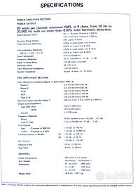 Amplificatore integrato Kenwood KA 9150 Unico proprietario Scatola originale Manuale d'uso originale Acquistato nel mese di febbraio del 1978 Caratteristiche tecniche; vedere foto dell'ultima pagina del manuale d'uso Condizioni estetiche: perfetto, come nuovo, interamente originale Funzionamento: di tanto in tanto perde volume sul canale sinistro Peso del solo amplificatore: 16,7 kg Preferibile ritiro di persona ma posso spedire accuratamente imballato