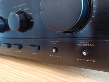 Amplificatore Integrato Pioneer A-445 – Condizioni Eccellenti Se cerchi la solida qualità costruttiva degli anni '90 unita a un suono dinamico e pulito, questo Pioneer A-445 è la scelta ideale. Il design "Honeycomb Chassis" (telaio a nido d'ape) garantisce una riduzione delle vibrazioni per una fedeltà sonora superiore. STATO DELL'OGGETTO: Estetica: Pannello frontale perfetto, senza graffi o segni d’usura evidenti. Un pezzo da collezione. Tecnica: Completamente revisionato e verificato in ogni sua funzione. Elettronica: Potenziometri e selettori puliti (nessun fruscio), condensatori controllati, taratura bias verificata. CARATTERISTICHE PRINCIPALI: Potenza: 60W + 60W su 8 Ohm (potenza reale e vigorosa). Ingresso Phono: Ottimo stadio per giradischi con selettore MM/MC. Connettività: Ingressi CD, Tuner, Line, e due loop per Tape (o equalizzatori). Funzione "Direct": Per un percorso del segnale più breve e puro. Costruzione: Made in Japan, robusto e affidabile. DETTAGLI VENDITA: Spedizione: Disponibile con imballaggio accurato e protettivo (oppure ritiro a mano con prova d'ascolto). Località: Bari L'amplificatore è pronto all'uso, non necessita di alcun intervento. Un classico dell'Hi-Fi giapponese che regala ancora grandi emozioni. Disponibili numerose foto dettagliate e un video dimostrativo(richiedetelo) che attesta il perfetto funzionamento di tutti i canali, degli ingressi e la fluidità dei selettori (senza alcun fruscio).