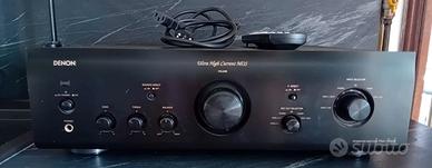 Amplificatore integrato stereo Denon PMA-1500AE per prestazioni di alto livello. Presenta una costruzione robusta e pesante (circa 14,6 kg) con uno chassis ben schermato per ridurre le interferenze. Include molteplici ingressi, tra cui 5 ingressi linea e un ingresso phono MM/MC a buono. In ottimo stato e perfettamente funzionante. si predilige il ritiro a mano,visto il peso.