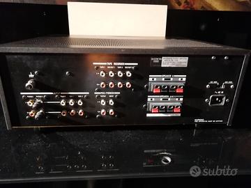 Versatile ( tra l'altro con 2 ingressi phono MM/MC di altol ivello) e potente ( 100 w x2 RMS) e di rara beelzza con la sua livrea grigio titanio e i Vu Meters "rovesciati".