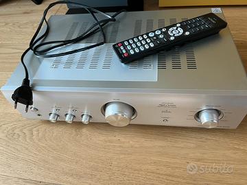 Amplificatore integrato con Bluetooth, 45 + 45 W RMS su 8Ω, 70 + 70 W RMS su 4Ω. Stadi di amplificazione (AHC) ad alta corrente e a larga banda con circuitazione push-pull singolo. DAC interno 192KHz/24bit. SPECIFICHE – PMA-600NE 2 ingressi digitali ottici e 1 coassiale. Streaming Bluetooth. 4 ingressi linea, ingresso phono MM. Controlli di tono. Modalità analogica Pure Direct. Uscita Rec-out e Pre-out Sub. Pannello frontale in alluminio. Telecomando. Sezione Amplificatore di Potenza: Potenza Nominale: 45W + 45W (8 ohm, 20Hz-20kHz, THD 0.07%) 70W + 70W (4 ohm, 1kHz, THD 0.7%) Distorsione Armonica Totale: 0.01% (Rated Output –3dB) a 8 ohm, 1kHz Ingresso Sensibilità MM: 2.5 mV / 47 kohm, Rapporto segnale/rumore: 84 dB (segnale di ingresso 5mV) Ingresso Sensibilità CD/Network/Aux/Recorder: 100 mV, Rapporto segnale/rumore: 105 dB Altre Specifiche: Bluetooth: Sì Modalità OFF: Sì (Modalità Analogica) Controlli di Tono: Bassi, Alti, Bilanciamento Connettori: Phono (MM), CD, Aux, 2 Ingressi Ottici, 1 Ingresso Coassiale, 1 Uscita Preout (Subwoofer) Dimensioni e Peso: Dimensioni: 434 x 308 x 121 mm Peso: 6.8 kg Alimentazione: AC 230V, 50kHz Consumo energetico: 185W