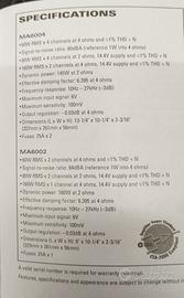 Vendo Amplificatore JBL Marine MA6004 in ottime condizioni completo di scattola e i suoi accessori dati tecnici nella 4 foto Preferito ritiro a mano.