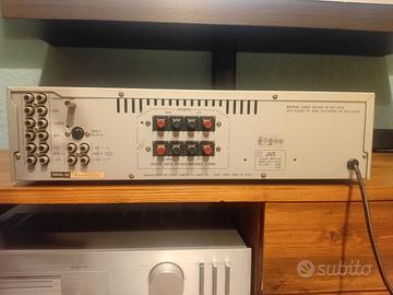 ottimo amplificatore integrato jvc mod ak 300 A-K300 perfettamente funzionante ( solo un piccolo segno sulla parte laterale dx) si possono collegare 2 set di casse diffusori ..controllo alti bassi loudness... led di potenza azzurri ( altre specifiche in ultima foto) si può ascoltare presso mia abitazione con diffusori jbl e lettore cd Pioneer..o se volete potete portare vostre elettroniche. preferisco il ritiro dopo prova di ascolto o spedire in forma privata.