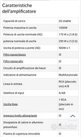Vendesi Amplificatore kenwood 1000w perfettamente funzionante di ex impianto auto peugeot 206 adattabile a qualsiasi auto, cablato, completo di cavi per collegamenti stereo/casse/sub/massa tramite jack. Zona Roma Eur Fonte Laurentina. Trattabile.