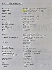 Vendo l'Amplificatore analogico integratoKENWOOD KA-9150, identico al modello KA-9100 che però è di colore argento, prodottonel 1977 dallaTrio-Kenwood Corporation, un'azienda giapponese.