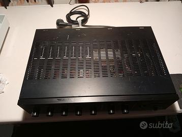 Amplificatore Konig Electronic A‑506M venduto come non funzionante. Il ponte diodi è bruciato, quindi l’alimentatore non parte; non esclusi altri guasti non verificati. Ottimo come donatore di parti: trasformatore, potenziometri, manca una manopola, frontale, schede interne. Completo di tutte le parti originali.