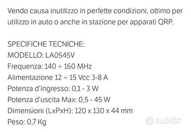 Amplificatore Lineare vhf zetagi La0545 v , potenza uscita 45w , perfetto in tutto.