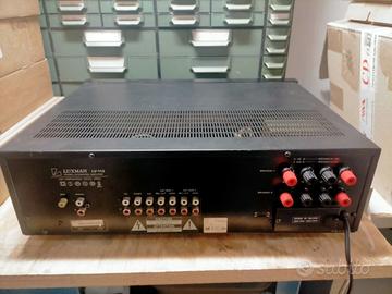 amplificatore Luxman primi anni 90 in buonissime condizioni perfettamente funzionantePotenza di uscita: 55 watt per canale in 8Ω (stereo)Risposta in frequenza: Da 10Hz a 100kHzDistorsione armonica totale: 0.1%Sensibilità d’ingresso: 2,5mV (MM), 150mV (linea)Rapporto segnale/rumore: 64,9 dB (MM), 82,9 dB (linea)Dimensioni: 438 x 137 x 365 mmPeso: 9 kg