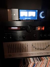 Ampli ibrido 130 watt x canale su 8 hom con funzione prealvoare e fiinale a transistor amplificatore ad alte prestazioni con 2 Ecc tubi 81 preselezionate e rodate.Preampli fono con ingresso MM/MC e filtro subsonico.