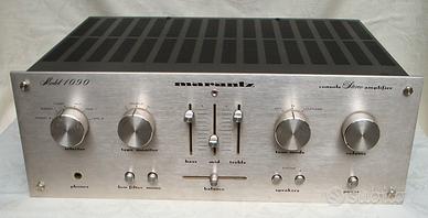 amplificatore MARANTZ model 1090 perfettamente funzionante caratteristiche : Power output: 45 watts per channel into 8Ω (stereo) Frequency response: 10Hz to 60kHz Total harmonic distortion: 0.1% Damping factor: 45 Input sensitivity: 1.8mV (MM), 180mV (line) Signal to noise ratio: 76dB (MM), 88dB (line) Output: 775mV (line), 1.5V (Pre out) Dimensions: 416 x 146 x 301mm ingressi : phono 1 phono 2 tuner aux tape 1 tape 2 Weight: 9.5kg Year: 1977