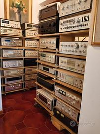 Da modesta collezione vintage, ancora molto bello nel suo colore champagne originale, e tecnicamente perfetto per restauro totale. Smontato, messo a bagno e lucidato il frontale con le manopole, mantenendo integre le serigrafie stilizzate, icona del marchio. Rifatte le saldature, ripristinati i valori elettrici, sostituiti, previo controllo, tutti i componenti ormai fuori misura, disossidati e lubrificati i potenziometri, etc...davvero pronto per i suoi secondi 45 anni. 47 watt reali e sottostimati per canale. Astenersi scontisti visionari e nulla-dicenti. Tel. 3402643139.