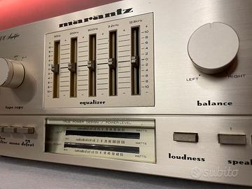Vendo amplificatore Marantz pm510 ,condizioni estetiche come in foto,funzionante e con buona potenza di 65w canale in 8ohm o circa 85w con casse da 4ohm,doppi misuratori di potenza a led e regolazione frequenze sul fronte .